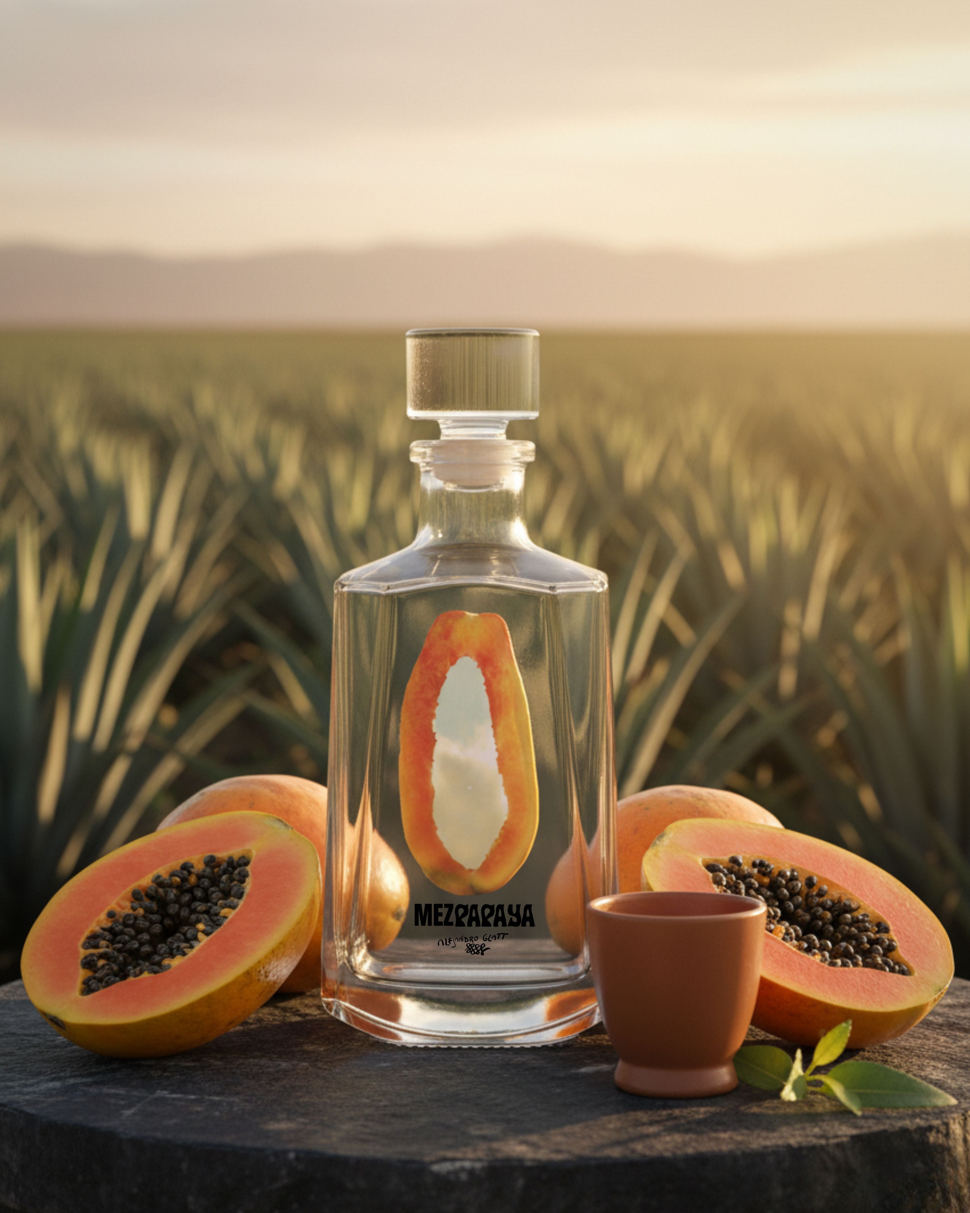 MEZPAPAYA is a bold collaboration between Alejandro Glatt, TUGURIO Mezcalería (Oaxaca), and A Medios Chiles Edición, uniting art, fruit, and mezcal tradition. Distilled with papaya and damiana, each bottle captures the essence of creativity, connection, and Mexican craftsmanship — transforming mezcal into a sensorial artwork.